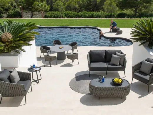 Succombez au charme du Salon Inata, une création signée Nicolazi Design qui sublimera votre extérieur. Son design élégant et épuré, associé à des matériaux haut de gamme, en fait un véritable havre de paix pour vos moments de détente en famille ou entre amis.